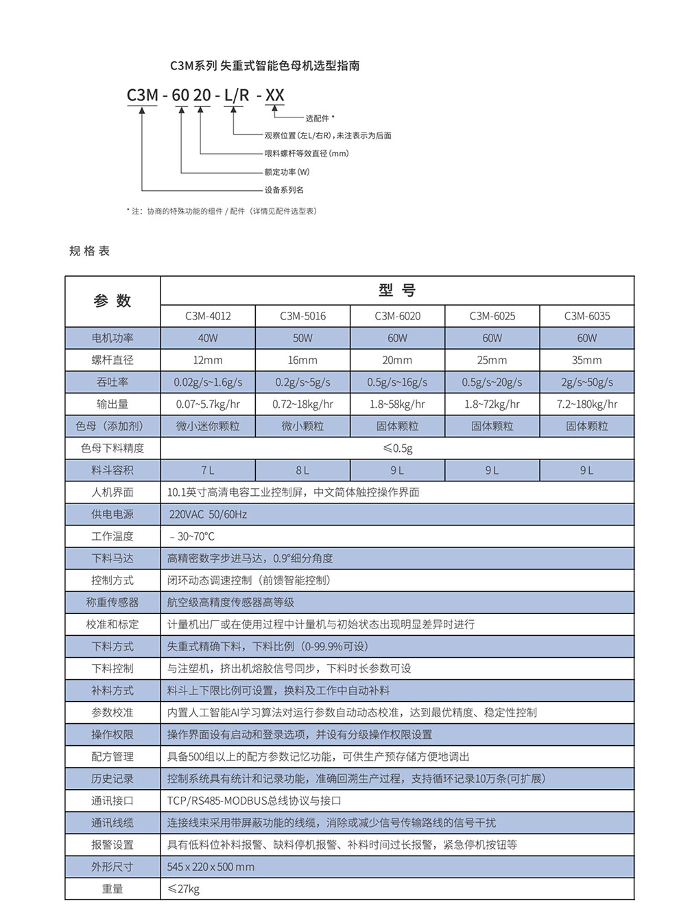- 多種類螺桿喂料系統(tǒng),適應(yīng)更廣泛的色母料